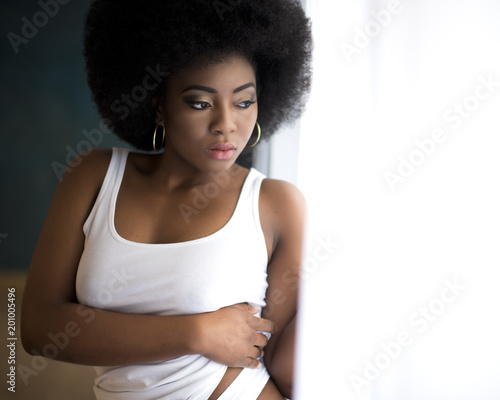 Beauty Black Girl With Afro Hair In White Underwear Looking At The Window Stock Photo Adobe Stock