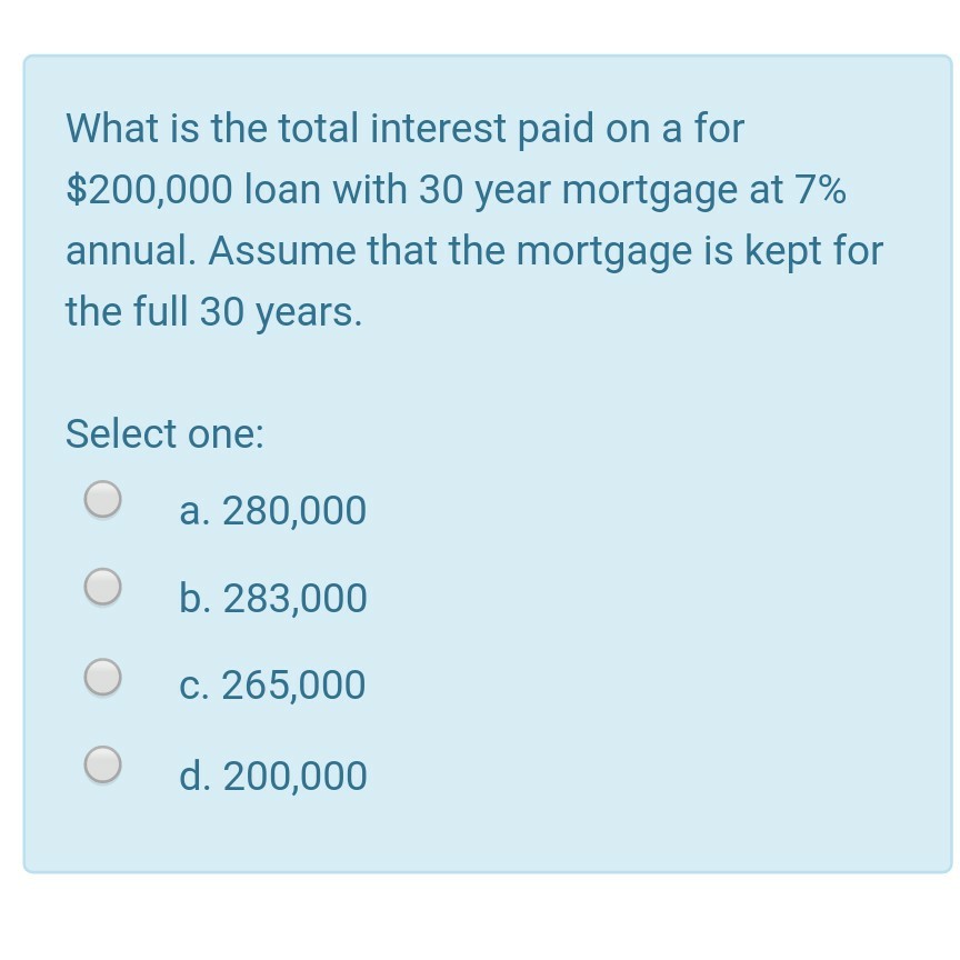 Solved What Is The Total Interest Paid On A For 200 000 Chegg Com